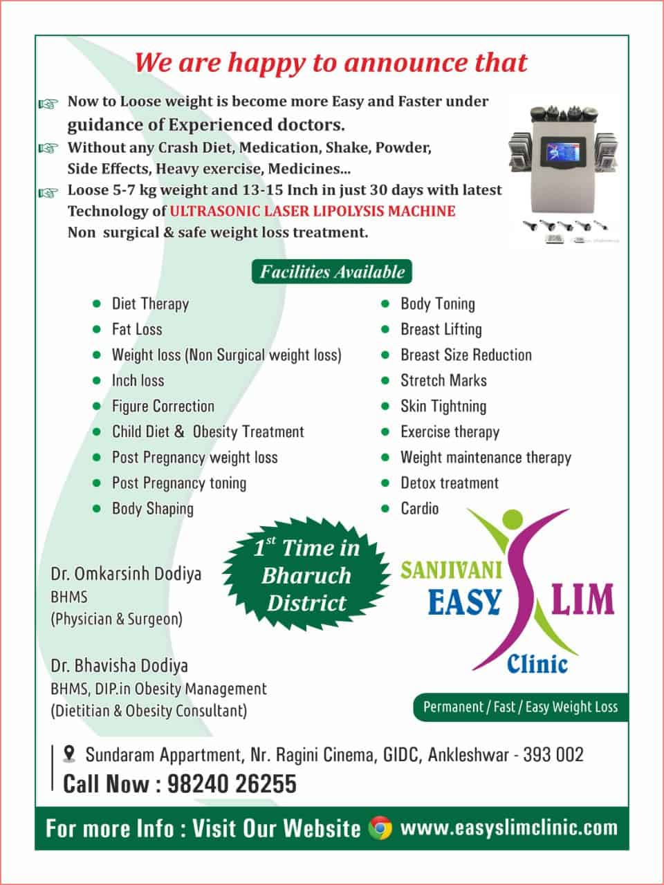 - SAFETY MEASURES: The technology is completely safe as the US waves go just 1.5 cm below the skin level without touching the internal organs. Only fat cells are targeted.